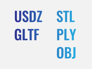 データ形式はUSDZ、GLTF、STL、PLY、OBJの出力に対応します。
